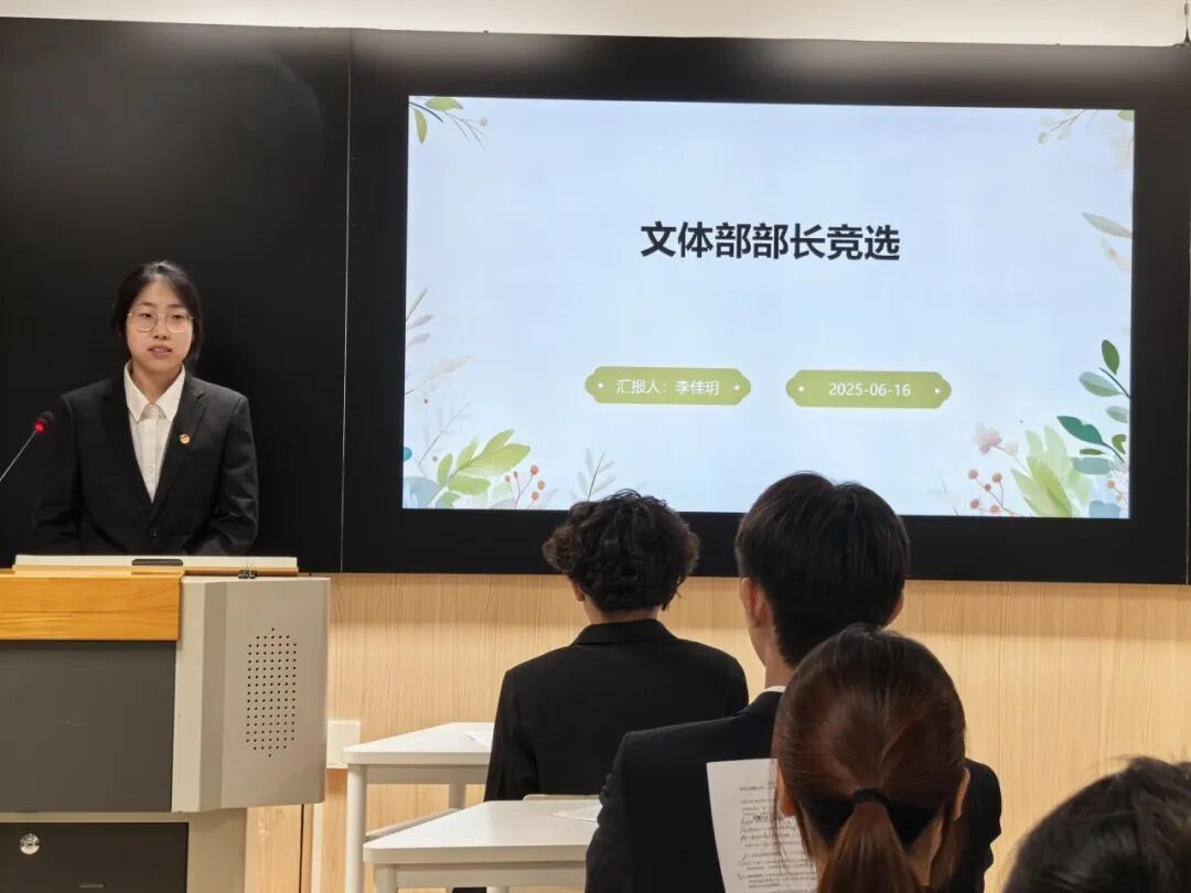 在述职报告环节,各部门部长依次上台,就过去一学期的工作进行了全面而简要的总结。他们回顾了部门在各项活动中的表现,分享了取得的成绩与经验,同时也毫不避讳地指出了工作中存在的问题,并提出了切实可行的改进方案。各部员也积极发言,从个人成长、工作挑战、未来计划等多个维度进行了述职。分别讲述了自己在学生会工作中的收获与成长,面对困难时的挑战与应对,以及对未来工作的展望与规划,展现了学生会成员的积极进取和不断进步的精神风貌。