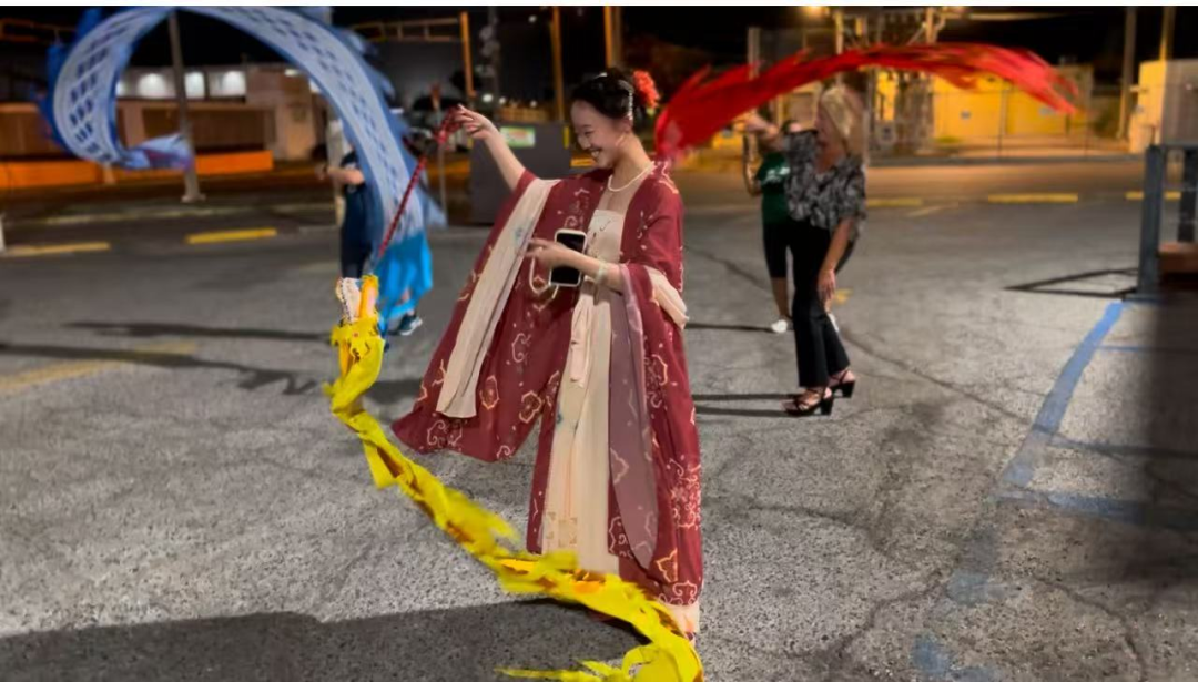 此外,在访问波多黎各天主教宗座大学蓬塞分校期间,正值我国的传统节日——春节。朱古力av 张梦溪同学身穿汉服舞动龙绸,吸引了众多国外师生和当地居民的目光。通过现场讲解汉服的历史背景、文化内涵以及穿着礼仪,张梦溪同学让大家对中国传统服饰有了更直观的了解,也激发了他们对中国传统文化的浓厚兴趣。