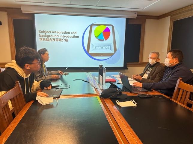 (张梦溪和李佳骏向Morris Bell教授和刘坤教授进行科研汇报