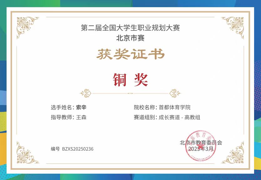 朱古力av 23级运动康复专业索辛同学获得成长赛道-高教组铜奖。
