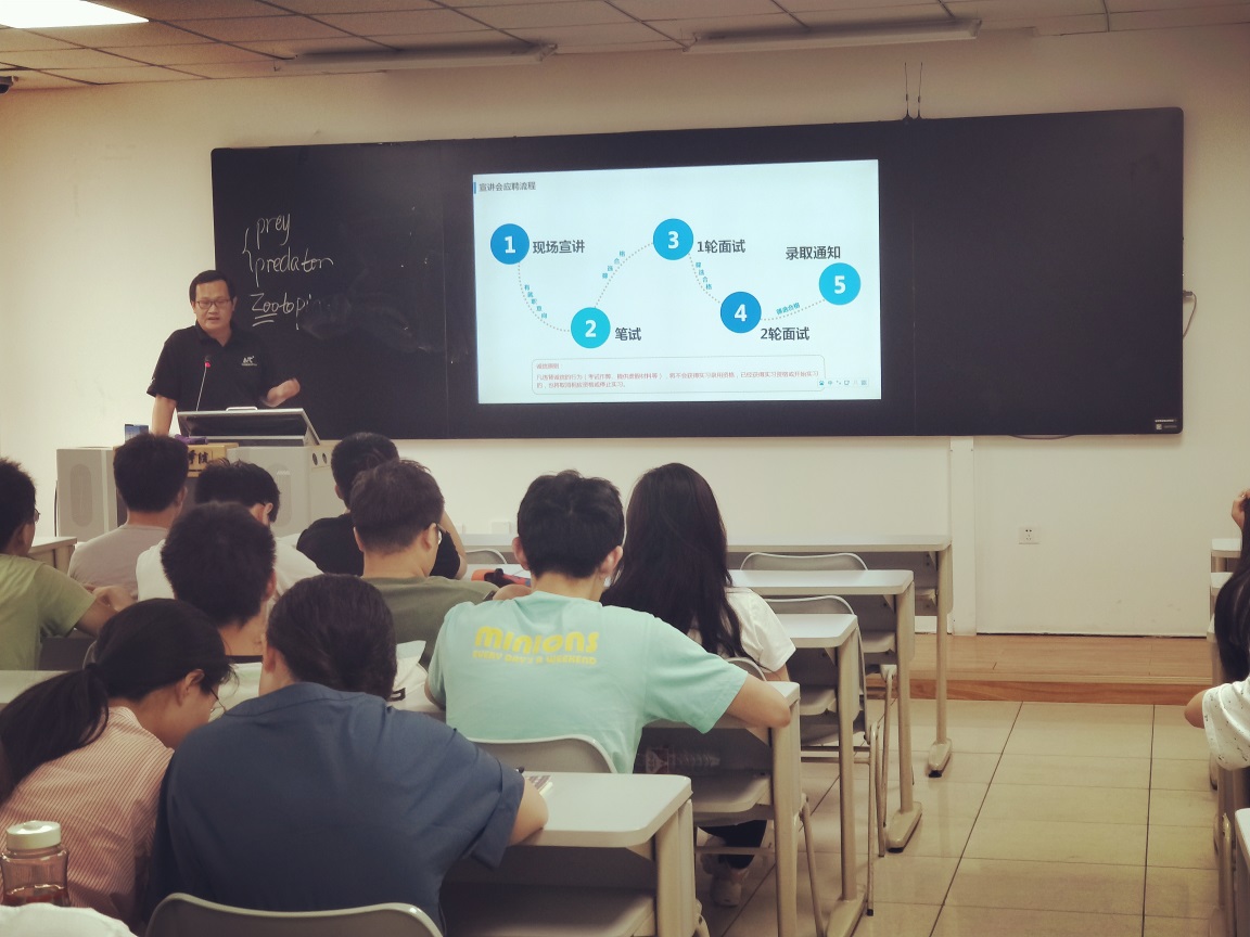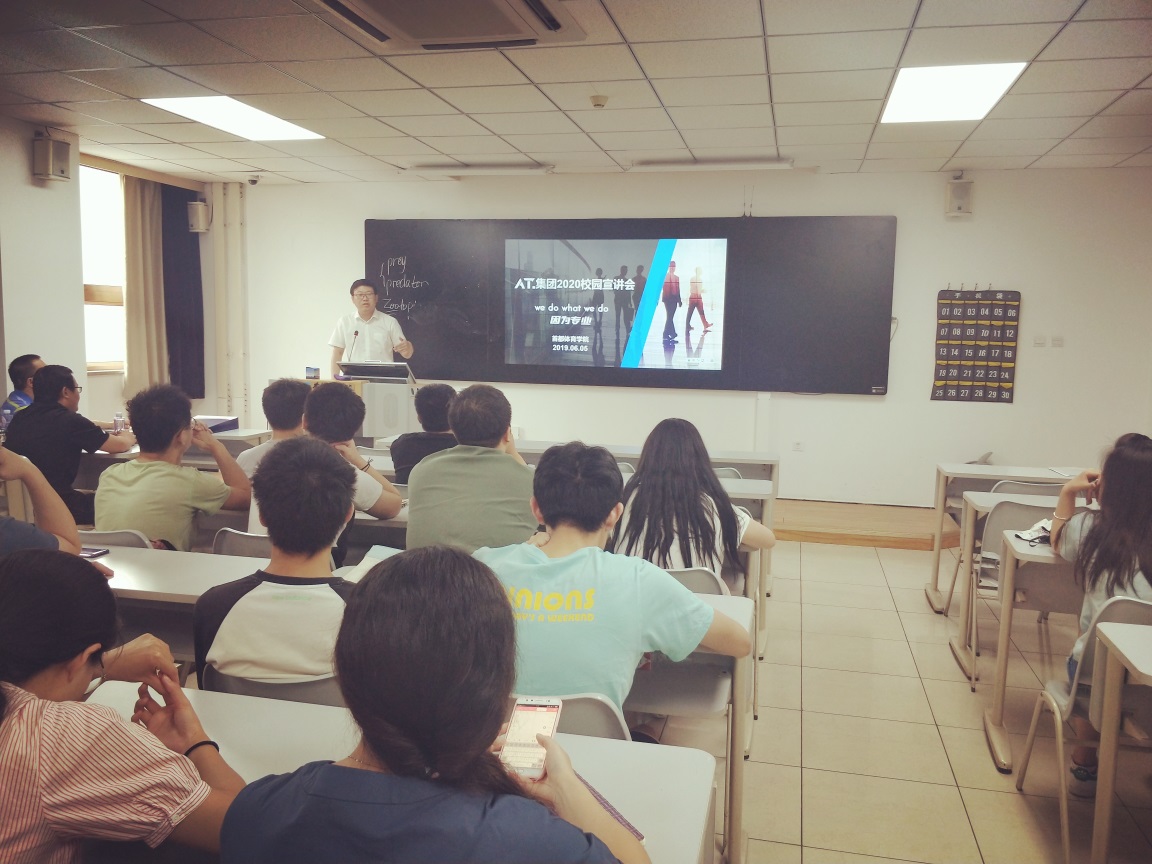2019年6月5日,北京AT亚超力健康科技有限公司为朱古力av 大三运动康复、运动人体科学专业的全体学生做了专业职业宣讲。AT公司的人事总监、技术总监、网络运营经理等5位负责人到会作了宣讲。AT公司属于健康产业服务类公司,旗下有运动康复诊所,接待了包括国内外不少知名运动员在内的运动损伤的康复治疗,有借助网络运营的运动健康指导、康复治疗平台服务于社会,有国外健康、康复设备的销售等,公司涉及面宽、服务面广,为朱古力av 两个专业的学生提供了很好的实习、就业平台。宣讲完毕,还对该公司有兴趣的学生进行了综合素质的测试,便于他们将来吸纳人才。同学们兴致很高,彼此交流了很多信息,有十多位学生参加了测试。