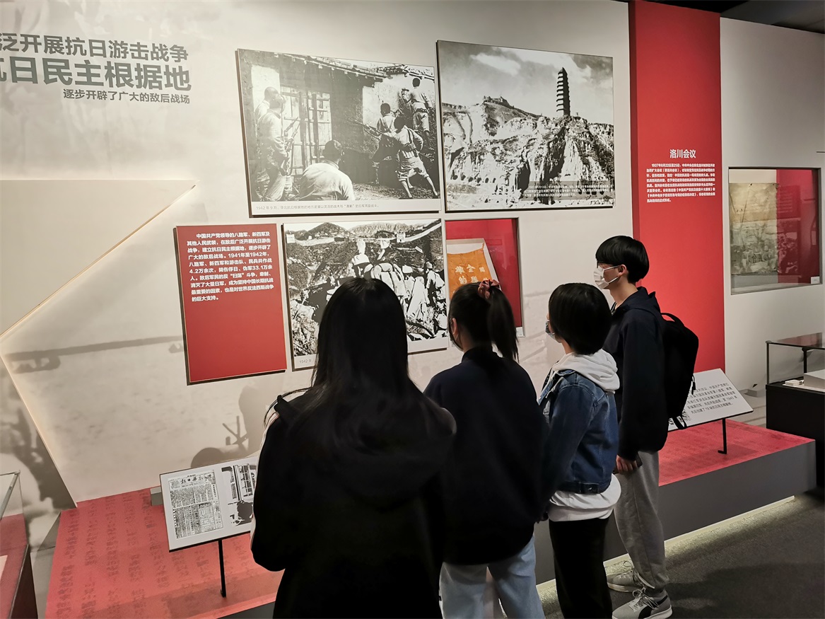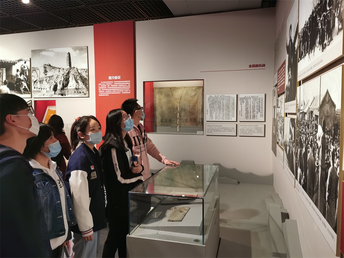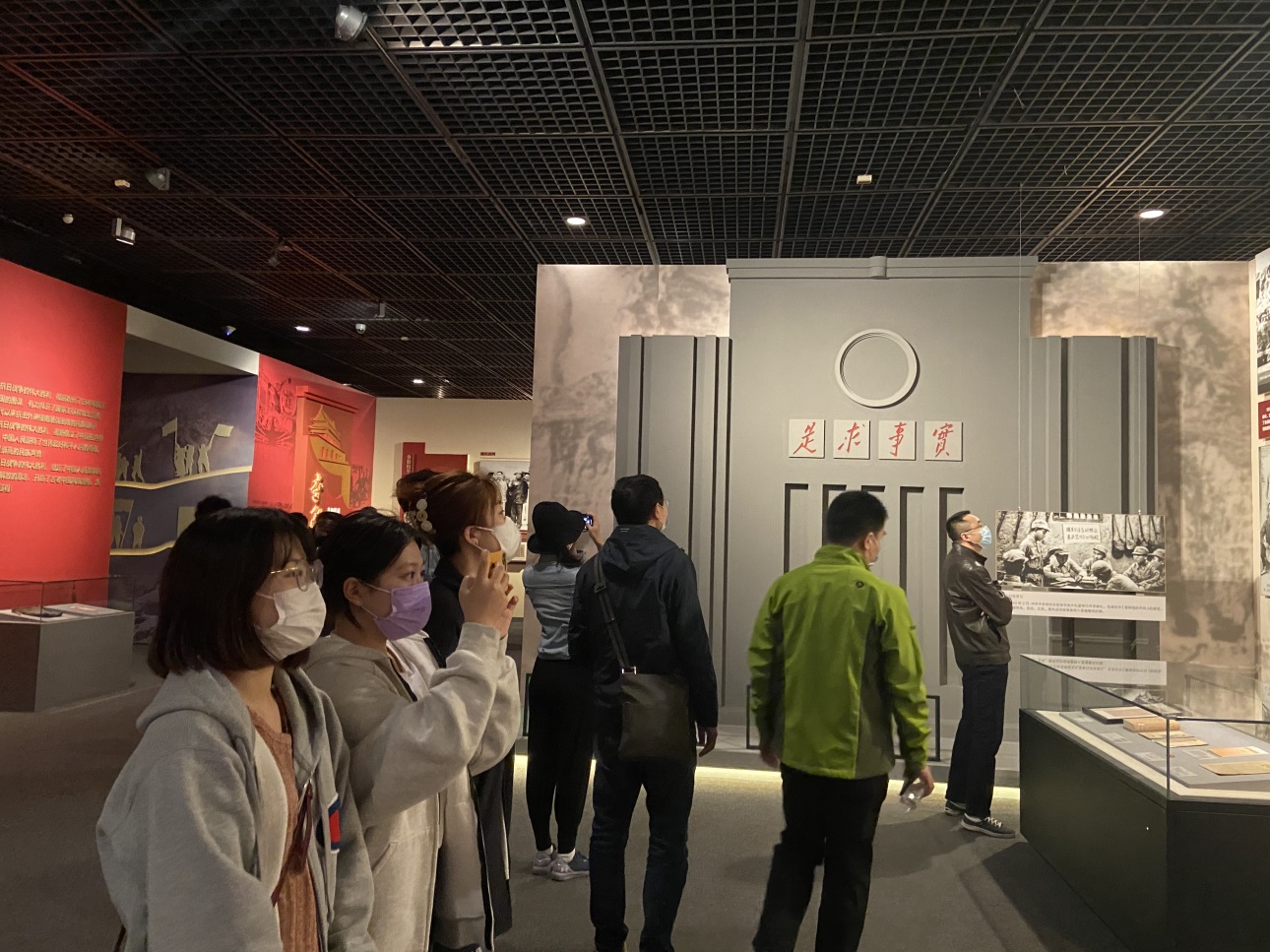参观过程中,同学们不时驻足观看展品,并通过展览中呈现的一系列历史事件回顾了从建党到建国这段波澜壮阔的历史。置身于承载着历史记忆的文物中,同学们时而感叹,时而沉思,尽管这些重大历史事件我们并未亲眼见证,但本次展览却使大家的心与祖国更加紧密地连结在一起,共产主义的理想和革命先烈的信念如同一面旗帜,始终飘扬在我们的心中。