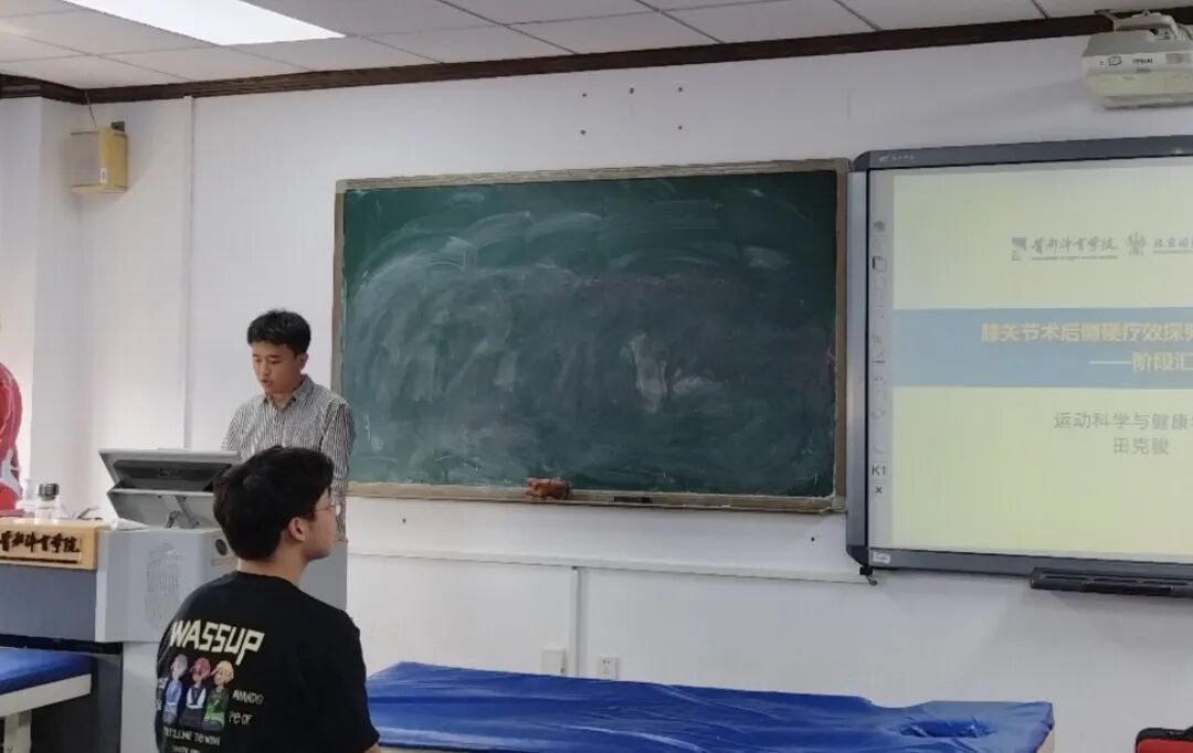 随后,田克骏同学以“膝关节术后僵硬的康复策略及智能化监测体系的应用”为题,介绍了膝关节术后僵硬的现状、传统康复方法的局限性,以及智能化监测体系在膝关节术后康复中的应用价值。研究探讨了智能化监测体系如何通过实时数据收集、提高康复训练的精确性以及早期发现问题,从而优化康复效果。